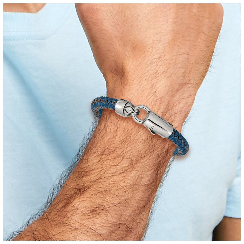 Chisel Chisel Stainless Steel Antiqued and Polished Blue Braided