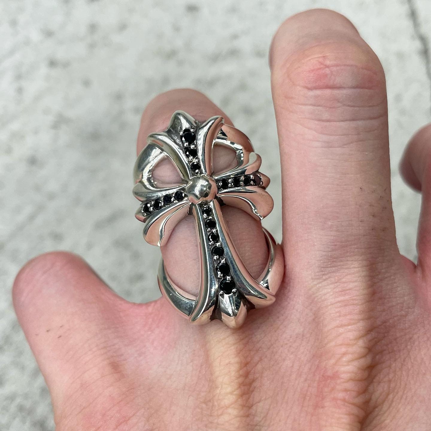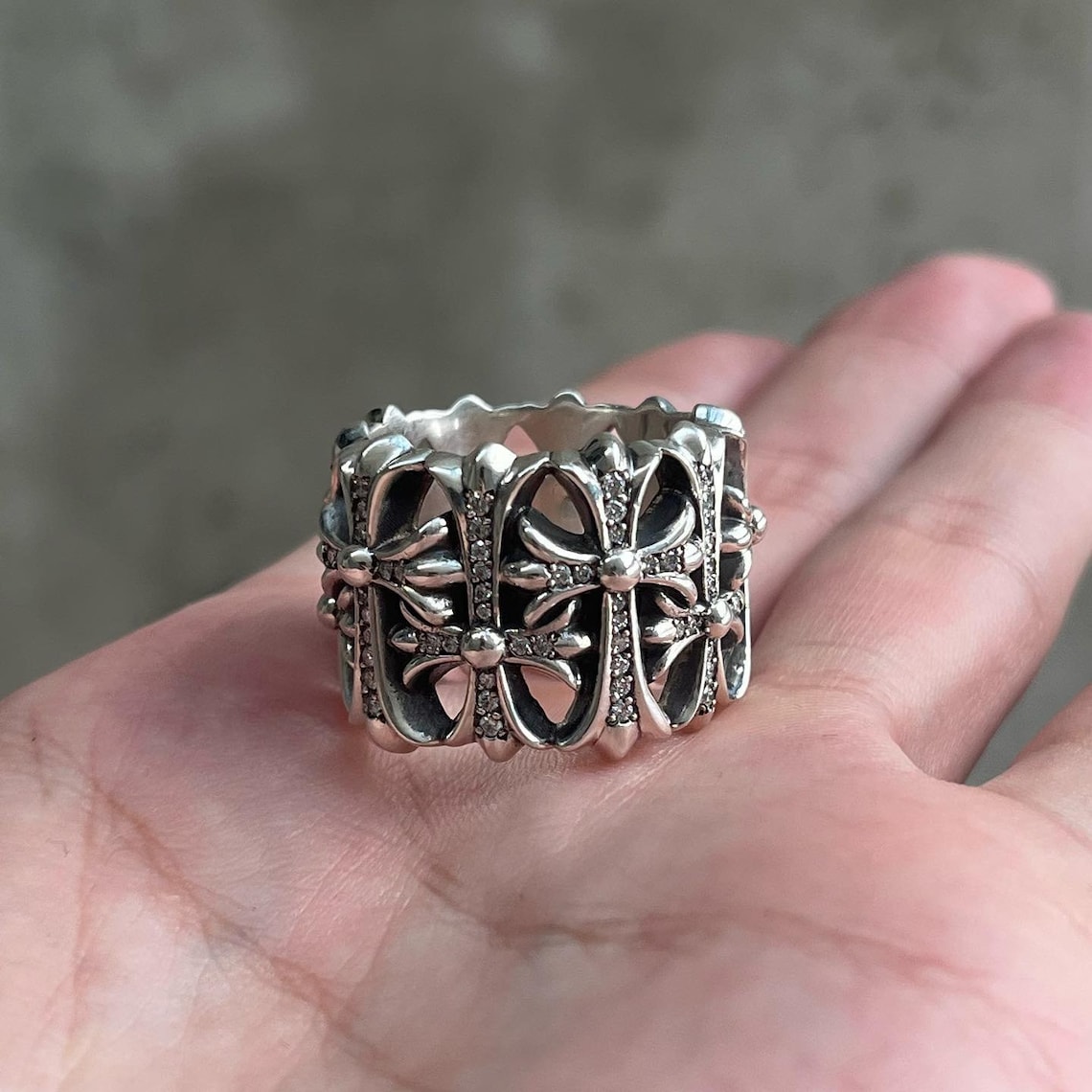 Chrome Hearts Cross Ring, CH 925 Silver Retro Style Rings, Chunky Ring