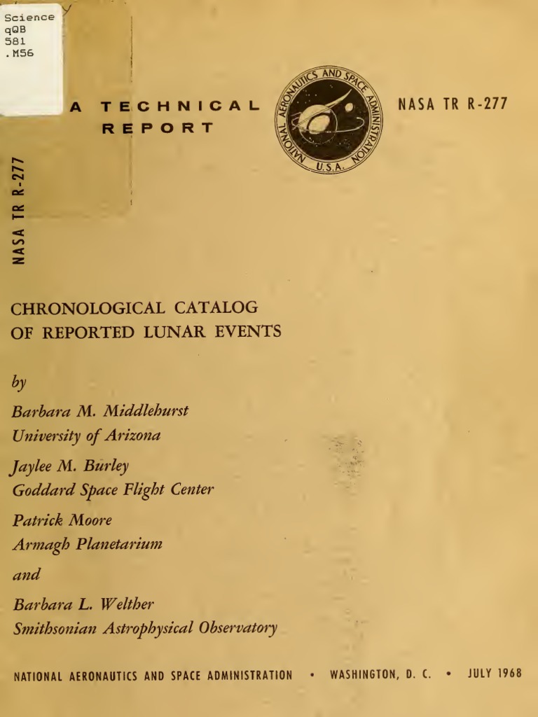 Chronological Catalog of Reported Lunar Events July 1968 NASA