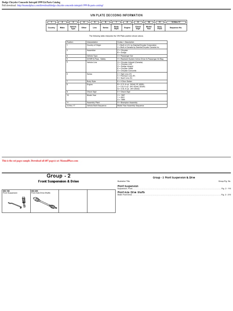 Dodge Chrysler Concorde Intrepid 2002 LH Parts Catalog PDF Chrysler