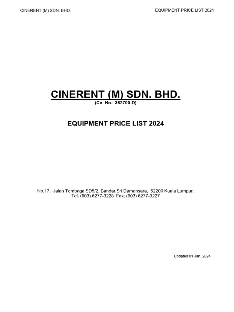 Price List Cinerent Full 2023 (Revised) 1 PDF