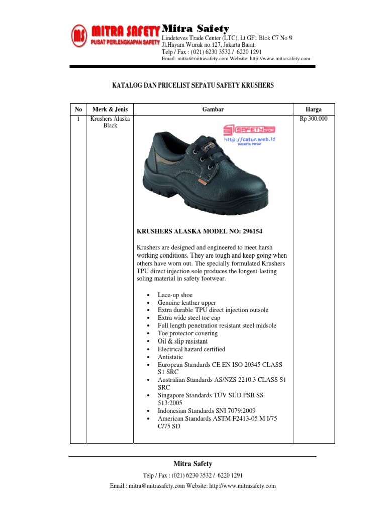 Mitra Safety Katalog Dan Pricelist Sepatu Safety Krushers PDF Shoe