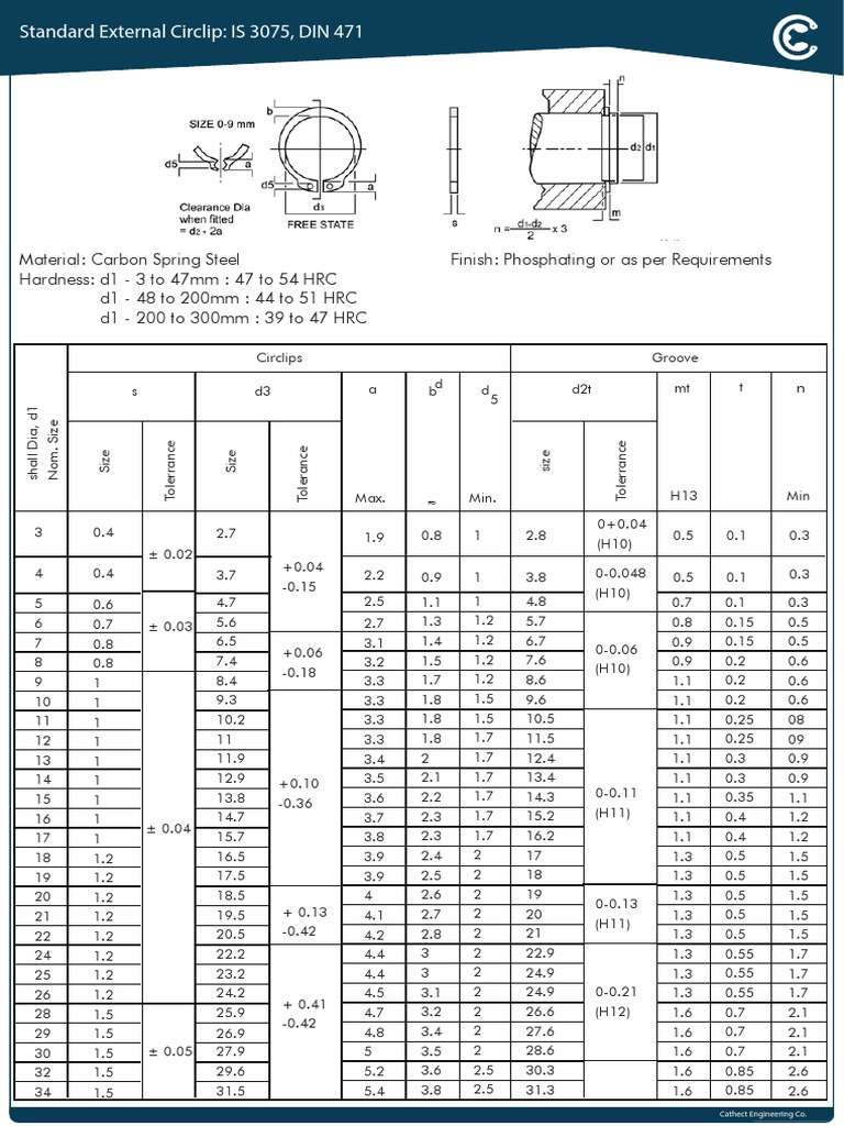 CirClip External Catalog PDF Engineering Tolerance Descriptive