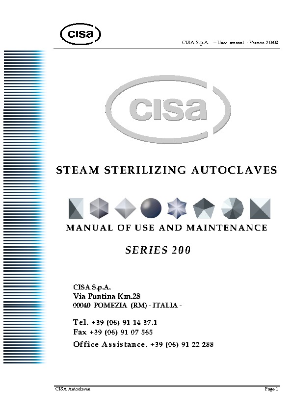 service manual for Cisa Autoclave Sterilizer Cisa 200 Autoclave