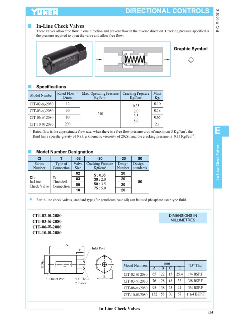 Cit Inline Check Valve Catalogue Yuken India PDF Valve Chemical