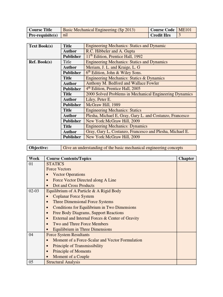 Course Outline Basic Mechanical Engineering Download Free PDF