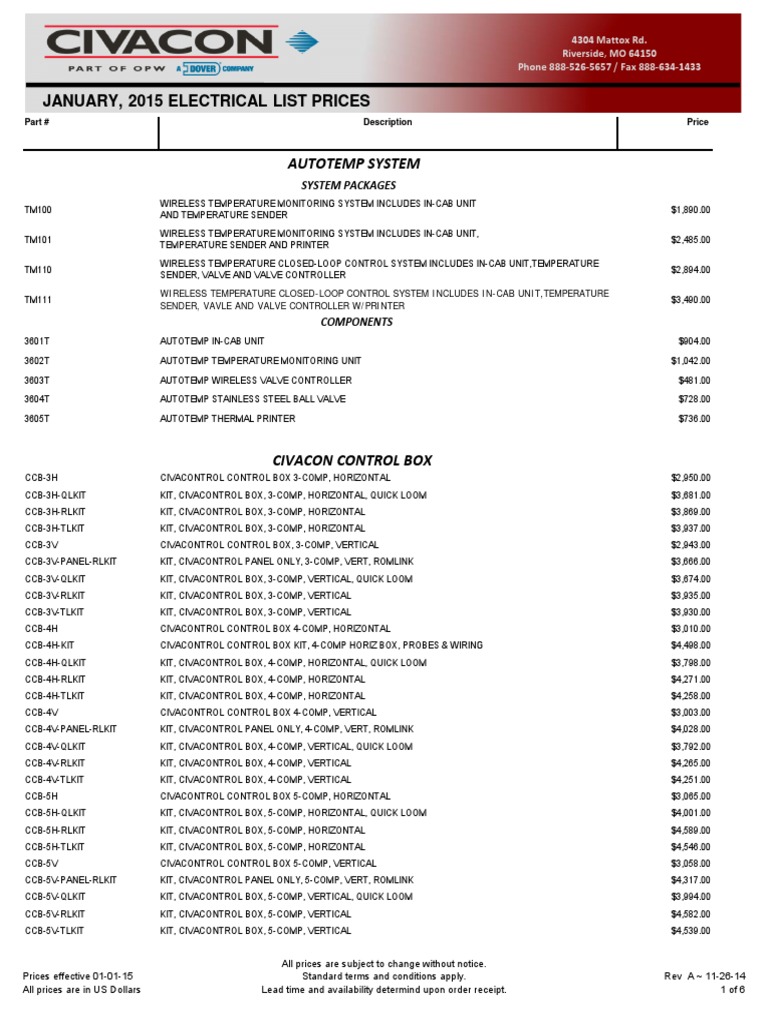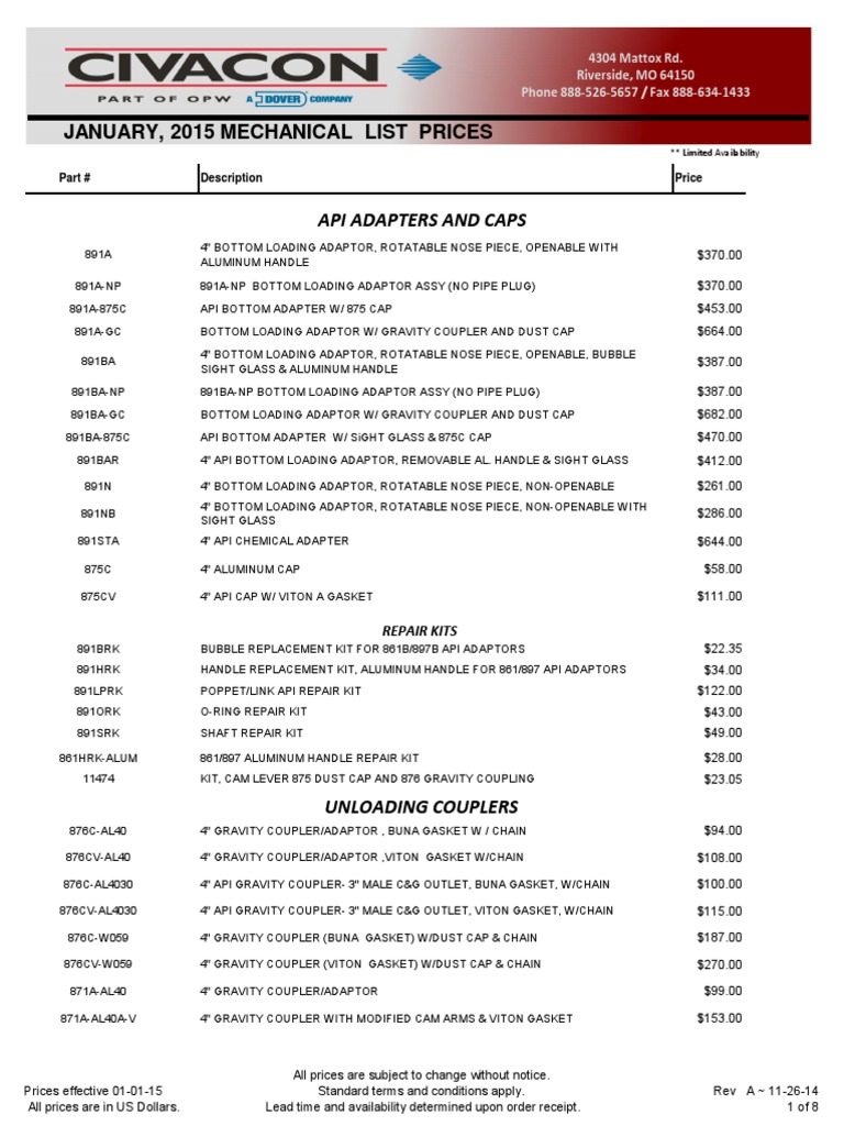 2015 Civacon Mechanical List Pricing PDF PDF Valve Petroleum