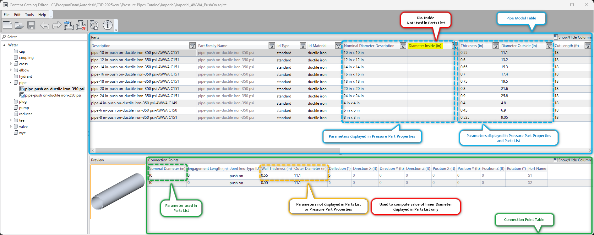 AutoCAD Civil 3D Tip PVC, HDPE and Steel pressure pipe parts catalogs