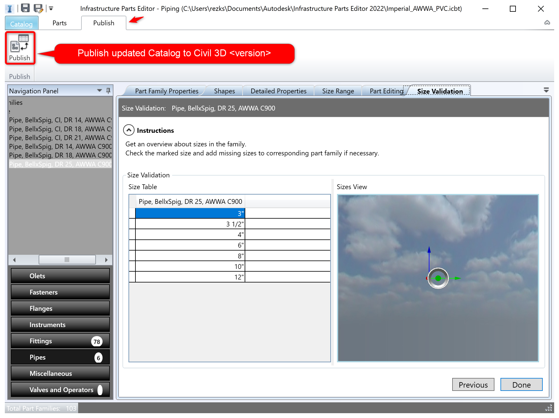 AutoCAD Civil 3D Tip PVC, HDPE and Steel pressure pipe parts catalogs