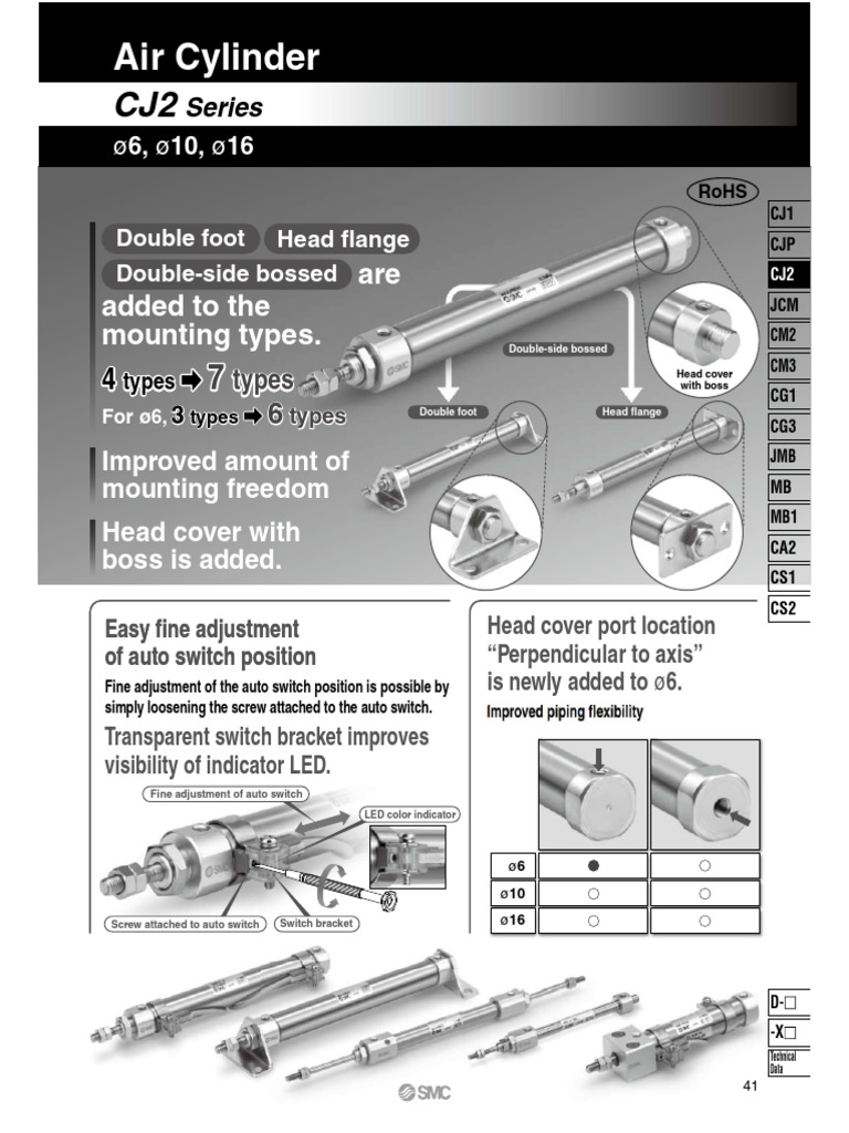 Air Cylinder Standard Type Double Acting Single Rod Smc CM2 Series