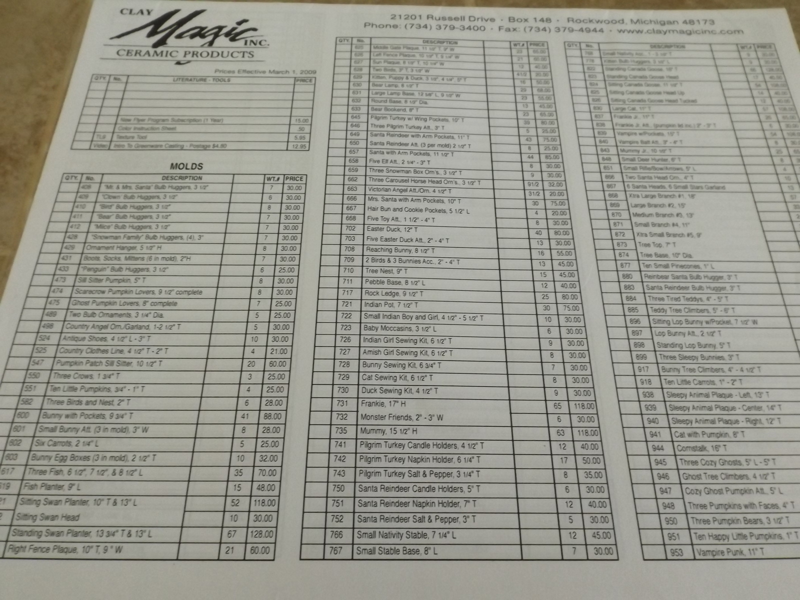 Clay Magic Inc. Ceramic Molds Price List Ceramics & Pottery