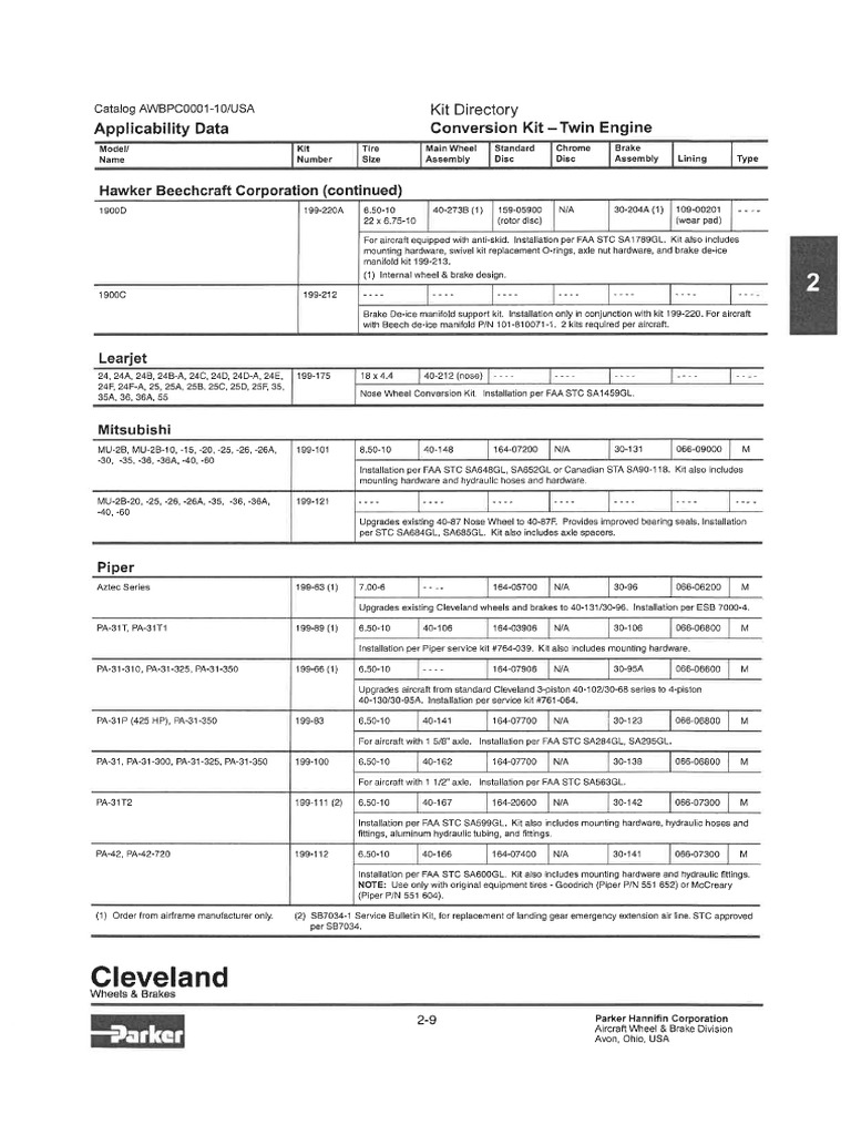 Parker Cleveland Product Catalog PDF PDF Brake Landing Gear