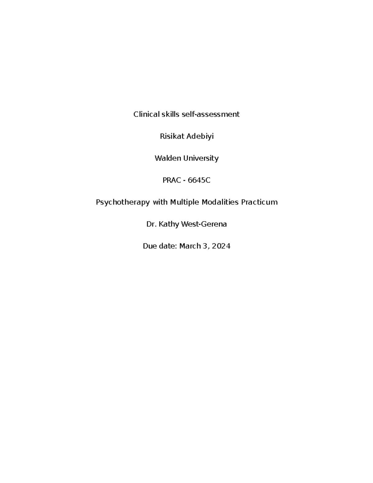 WK1Assgn 2+Adebiyi+R Coursework Clinical skills selfassessment