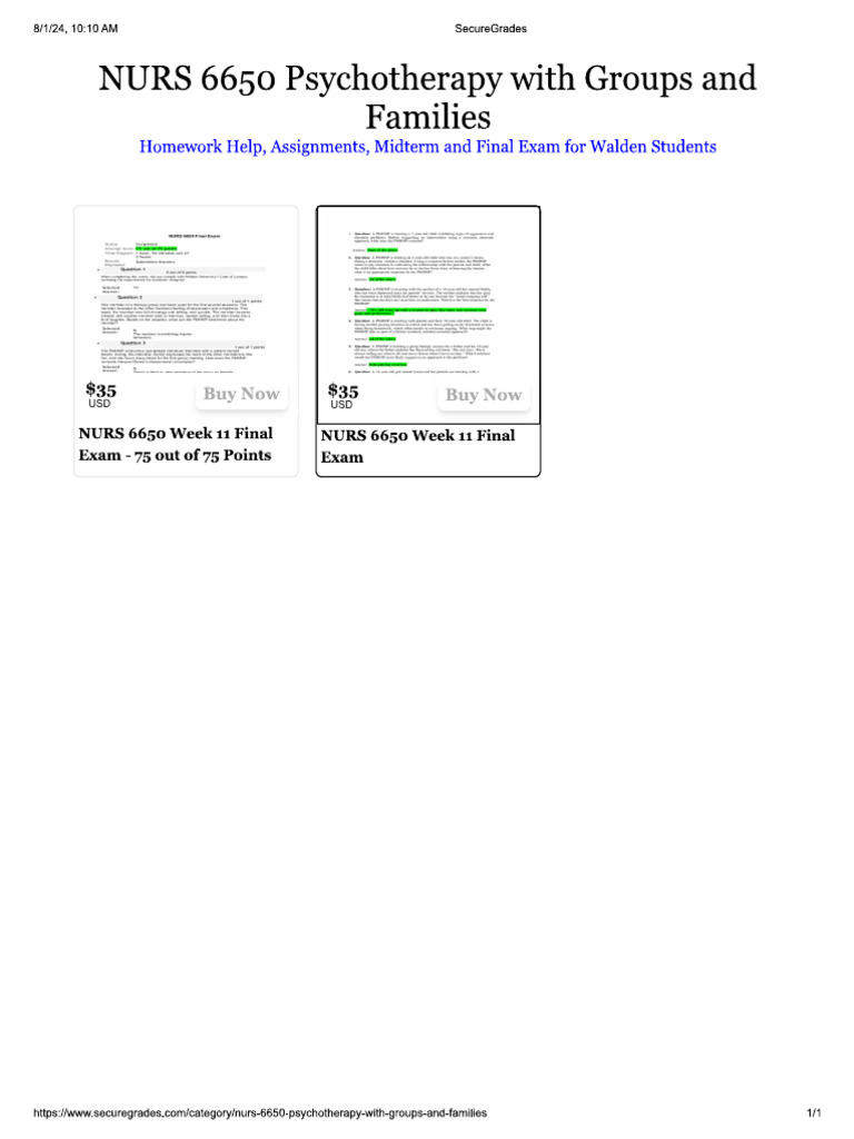 NURS 6650 Psychotherapy With Groups and Families PDF