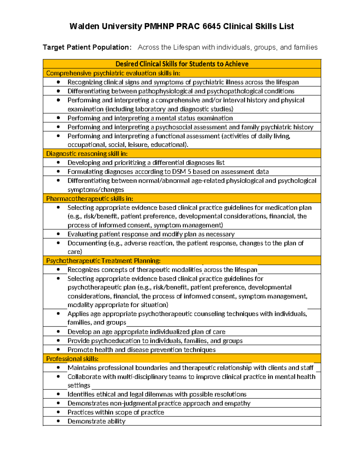 SOLUTION Pmhnp prac 6645 clinical skills self assessment form latest
