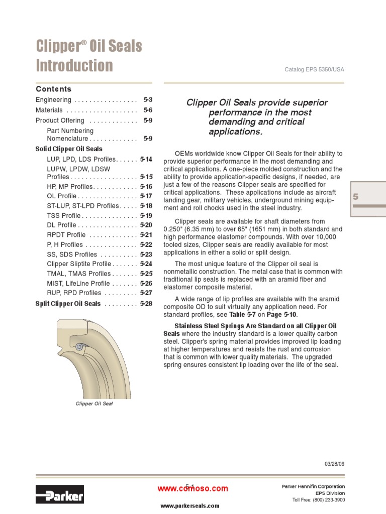Parker Comoso Rotary Seal Design 5350 Clipper Oil Seals PDF
