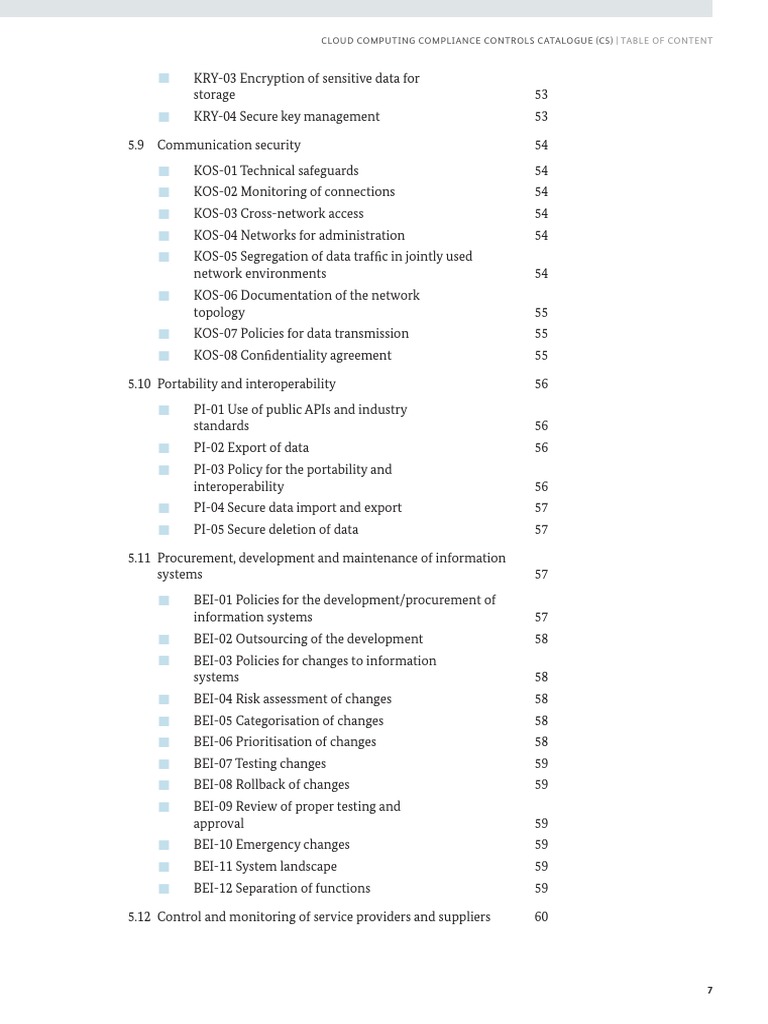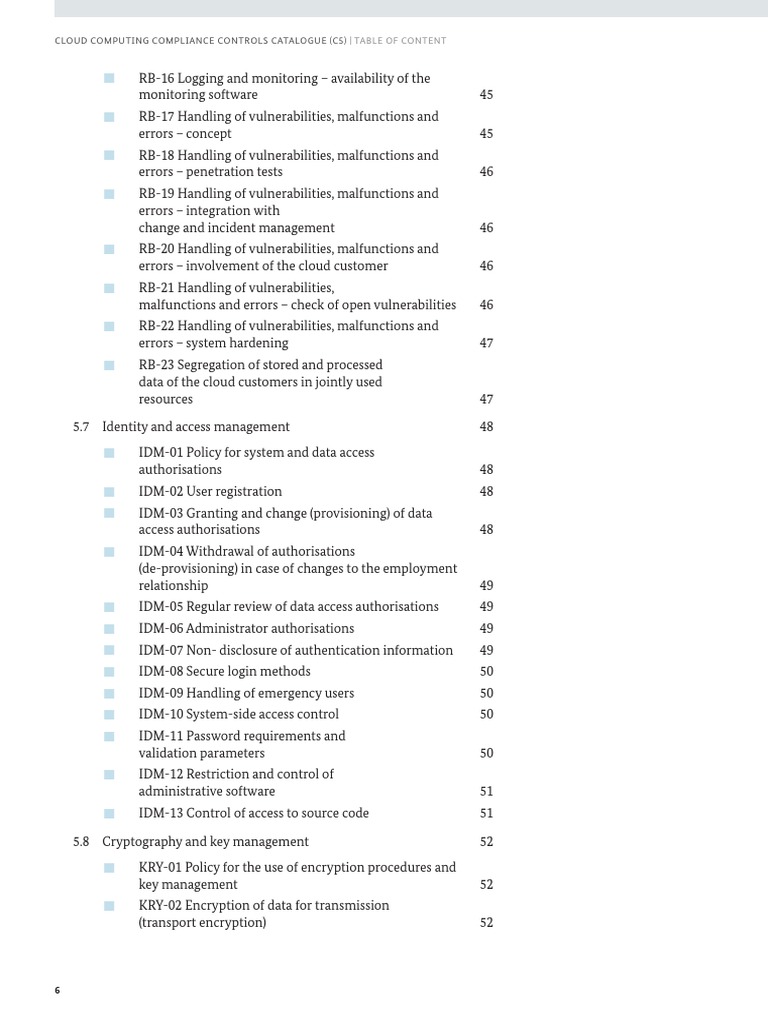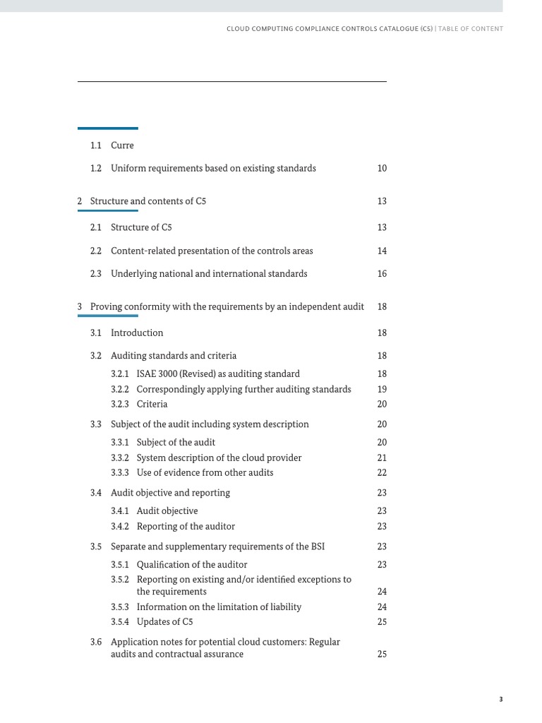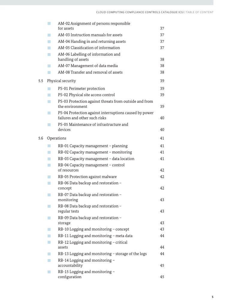 Cloud Computing Compliance Controls Catalogue (C5) Table of Content