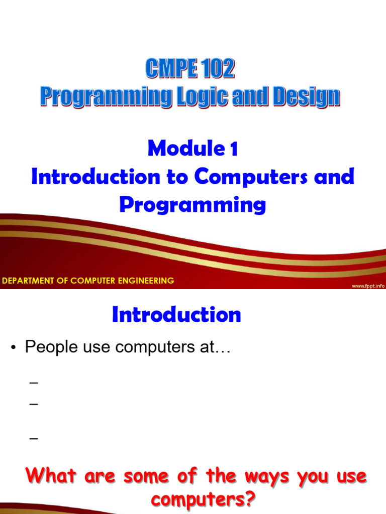 CMPE 102 Module 1 Introduction To Computers and Programming PDF