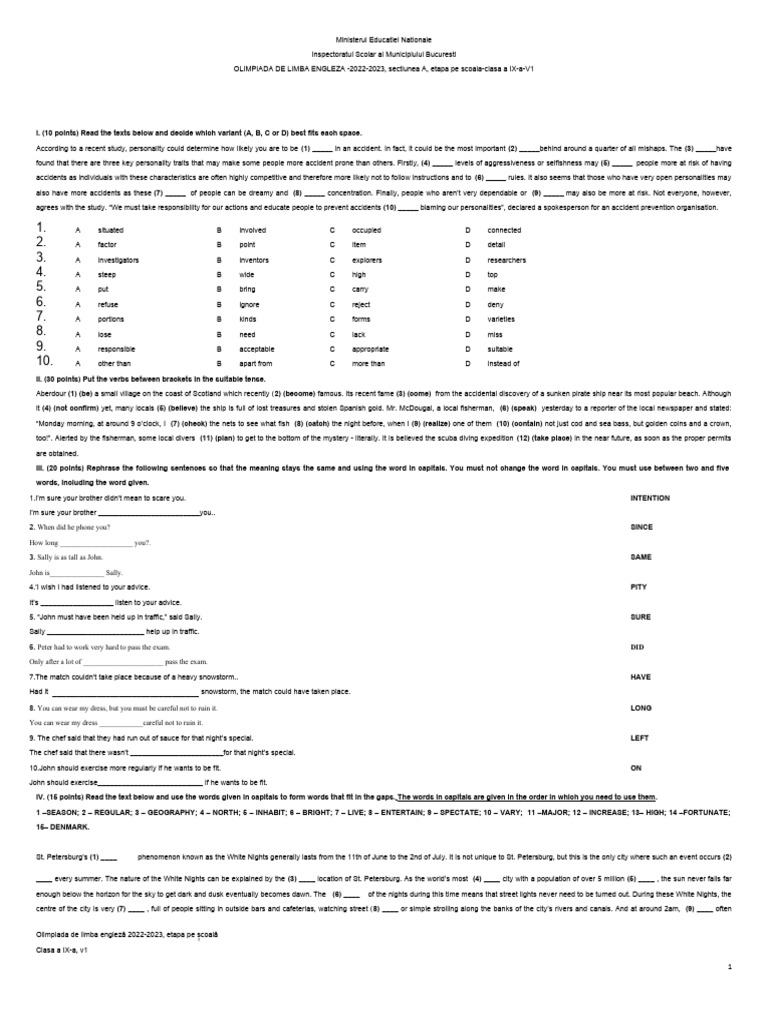 CNITV Olimpiada Engleza Scoala Clasa A IXa 2023 Sectiunea A PDF