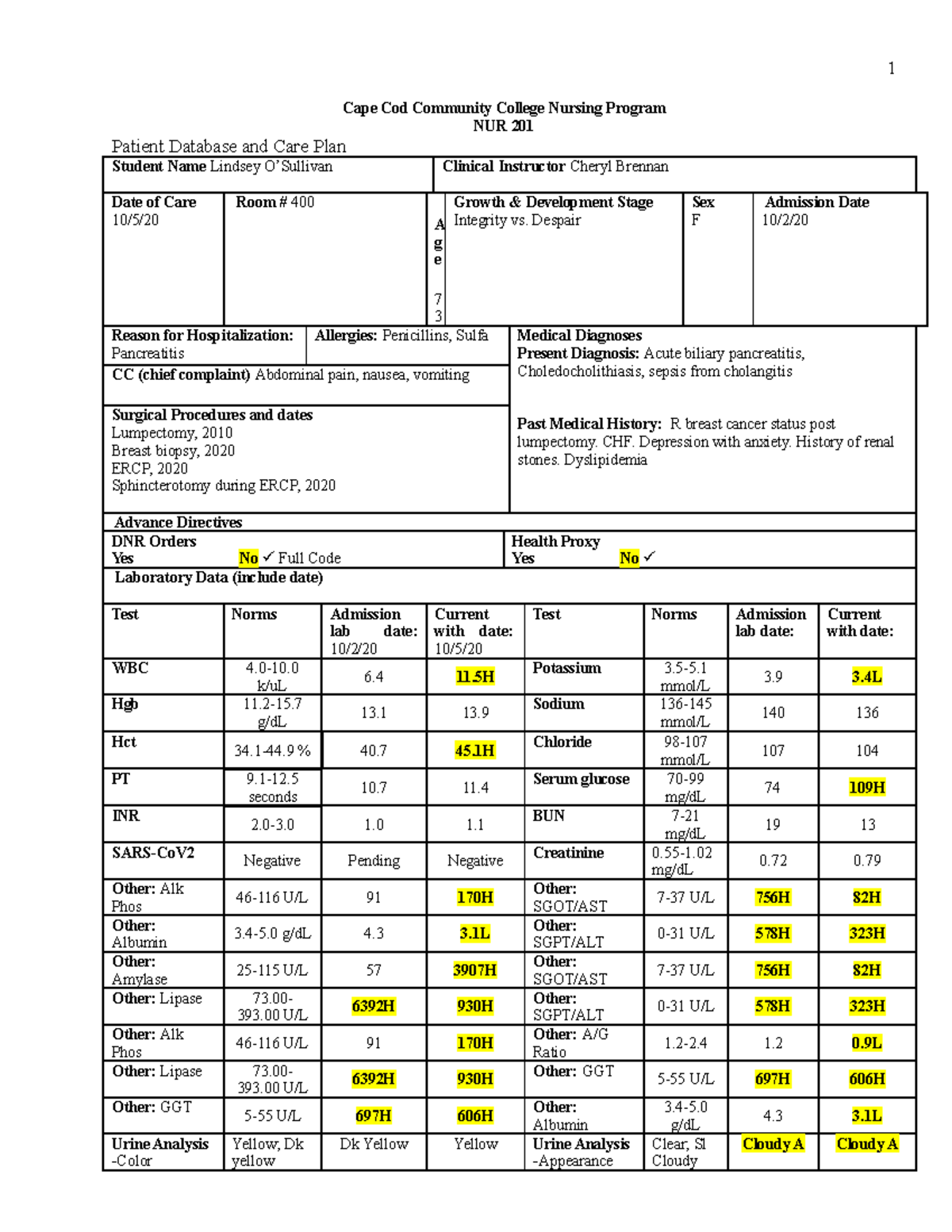 Careplan 1 care plAN Cape Cod Community College Nursing Program