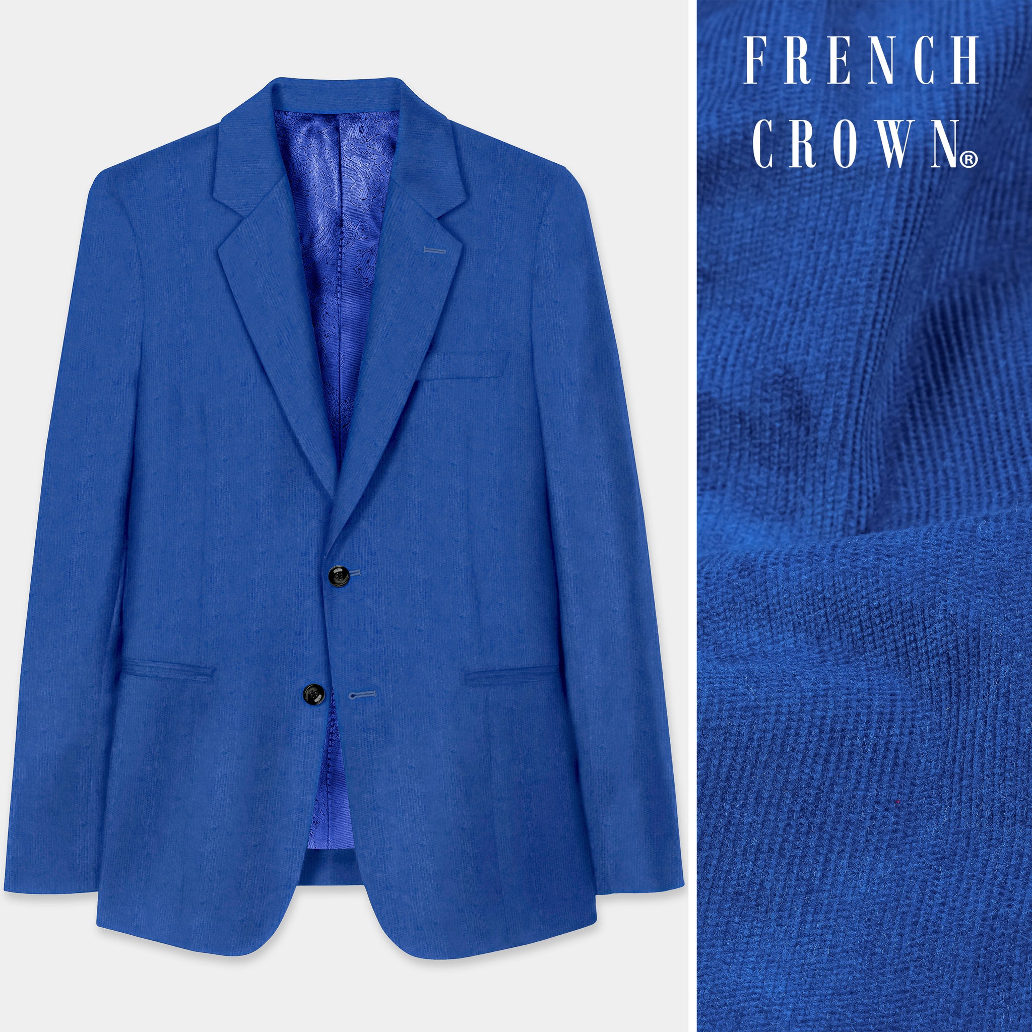 Cobalt Blue Textured Premium Polyester Single Breasted Blazer For Men.