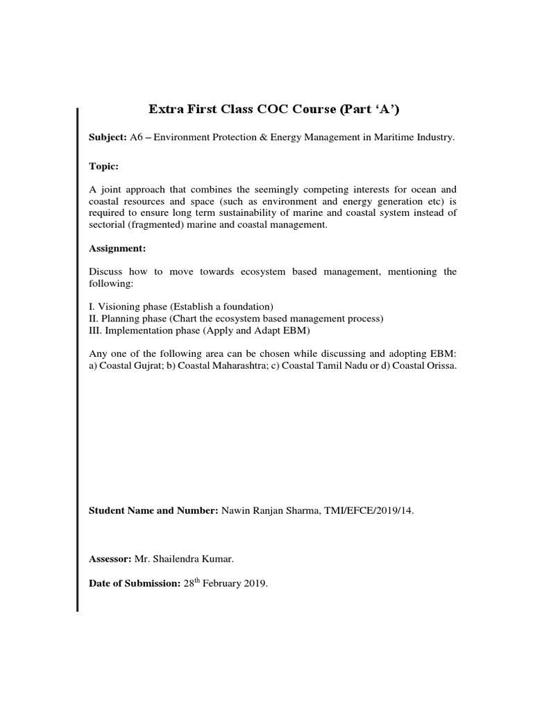 Extra First Class COC Course (Part A') Subject A6 Environment