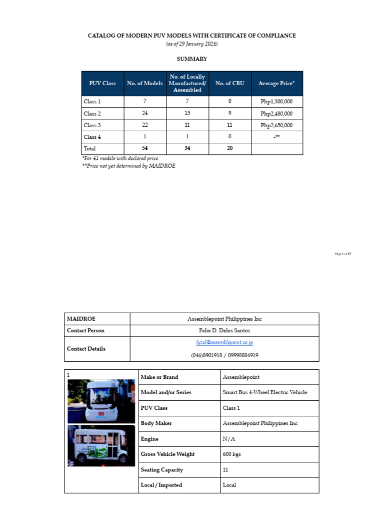 MPUV With COC Catalog As of 29 January Download Free PDF