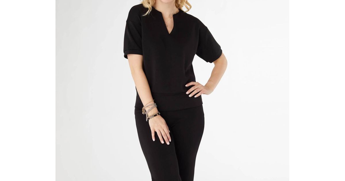 Coco + Carmen Hilarie VNeck Short Sleeve Top in Black Lyst