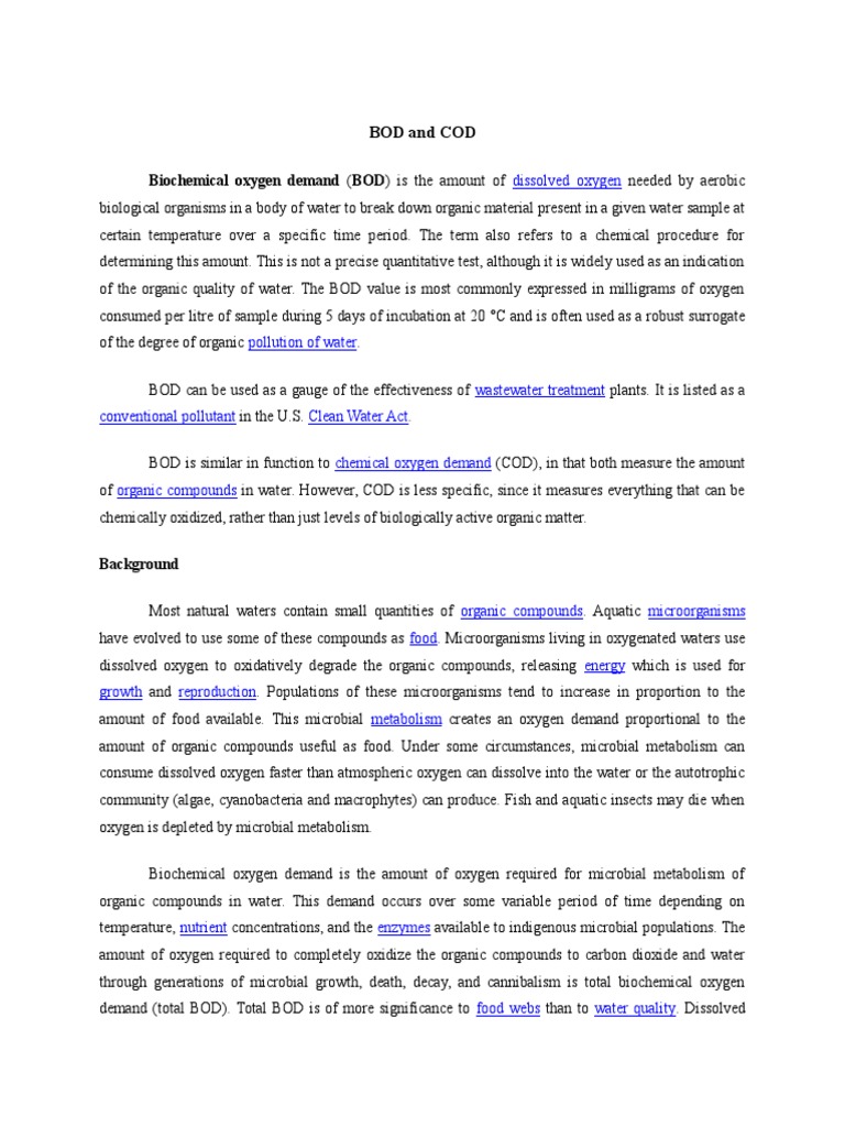 BOD and COD Environmental Science Physical Sciences