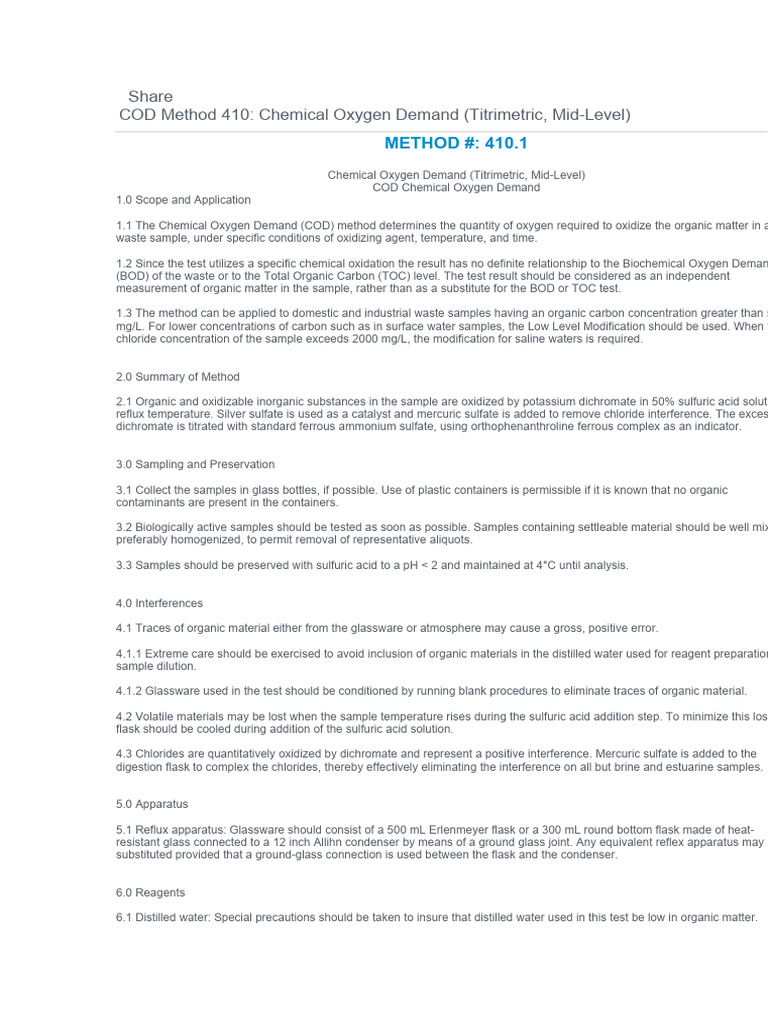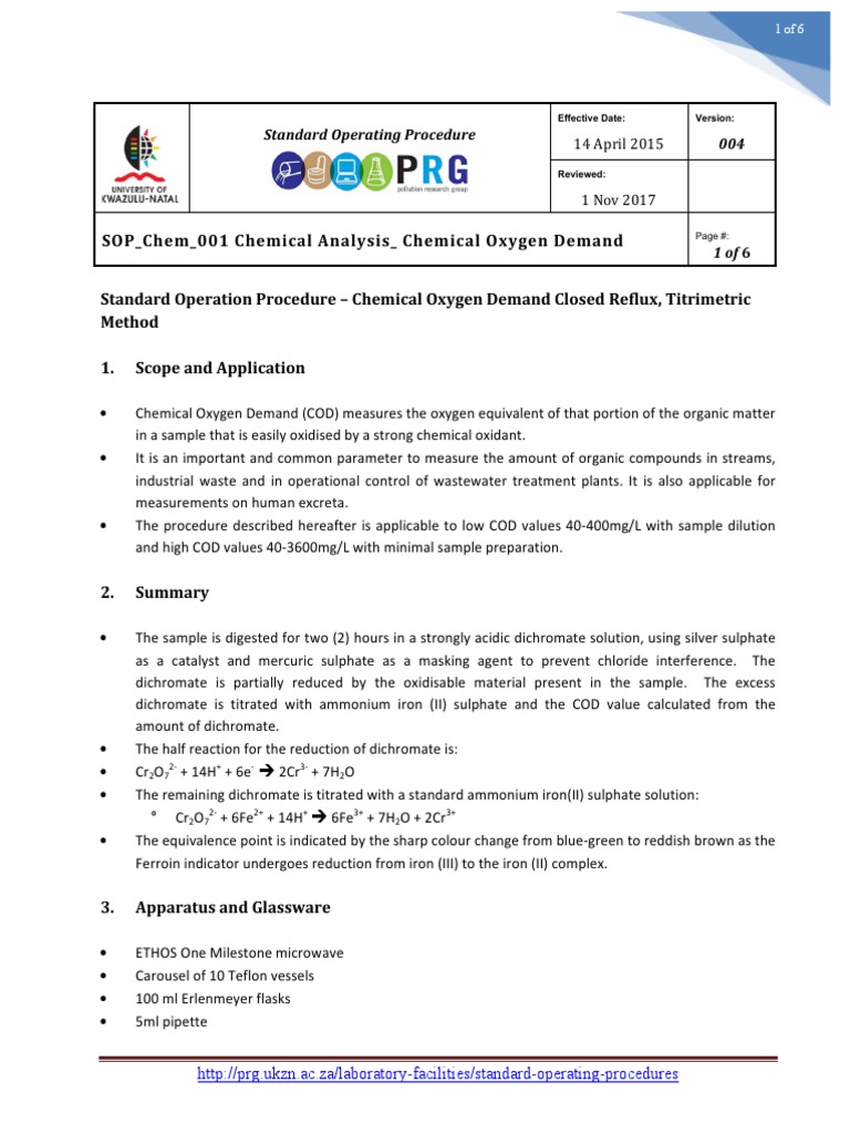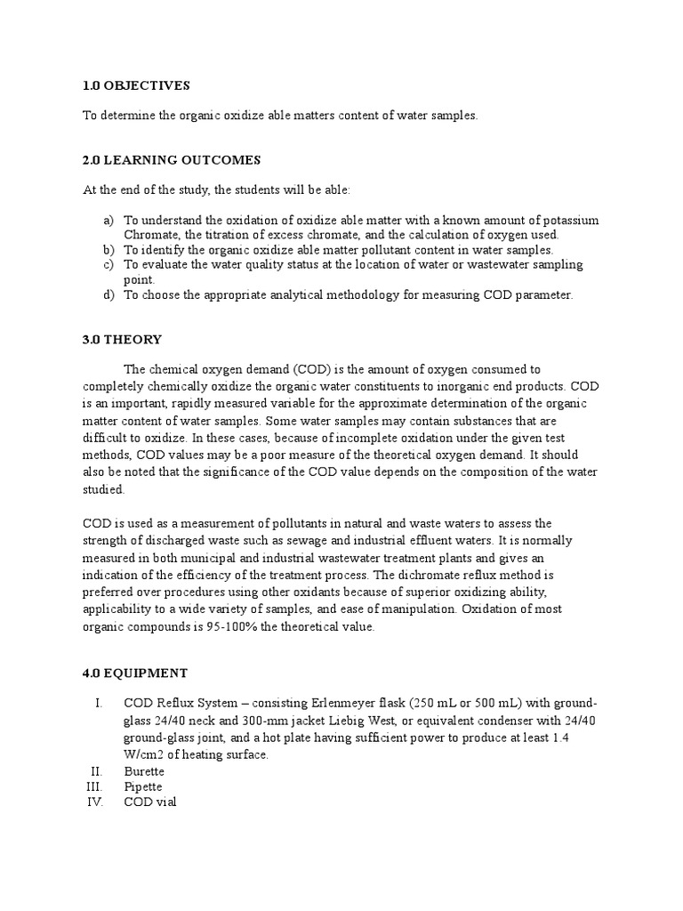 Chemical Oxygen Demand (COD) (Closed Reflux Method) PDF Chemistry