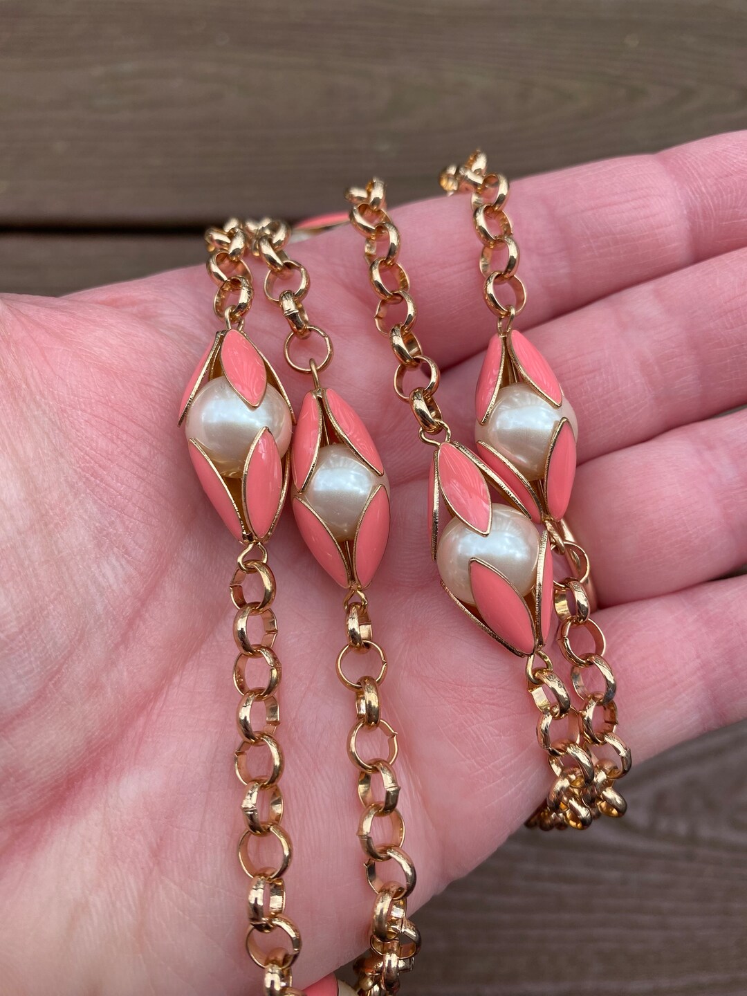 Vintage Jewelry Coldwater Creek Pink Enamel and Pearl Flower