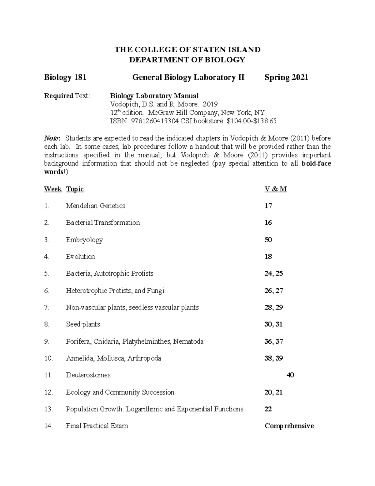 BIO 181 Fall 2023 syllabus Biology 181 Required Text THE COLLEGE OF