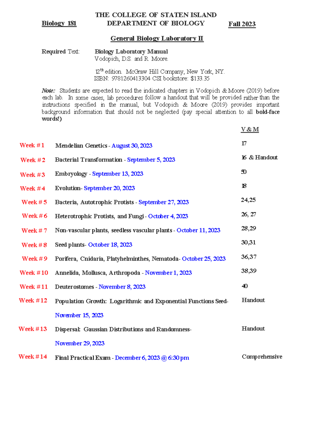BIO 181 Fall 2023 syllabus Biology 181 Required Text THE COLLEGE OF