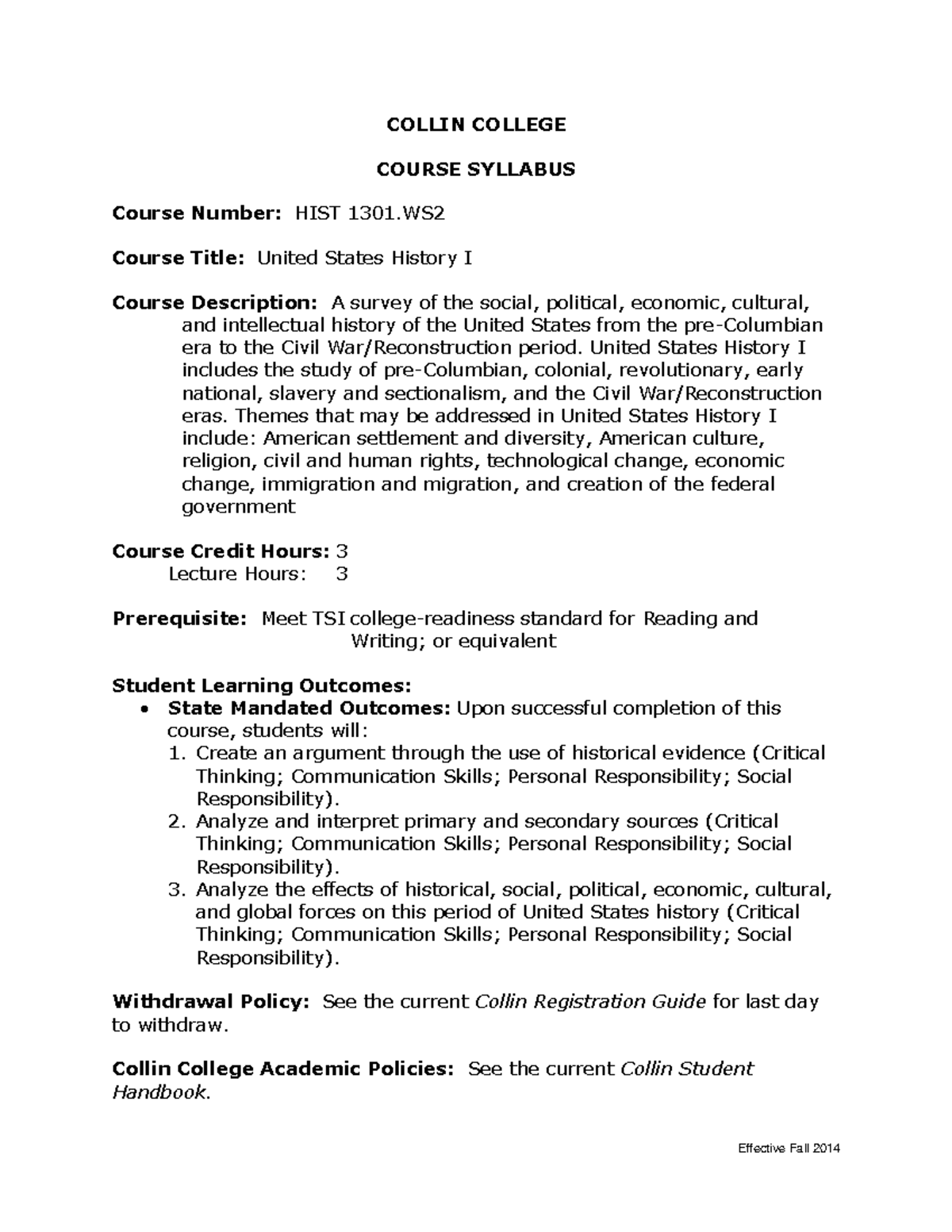 HIST1301 syllabus COLLIN COLLEGE COURSE SYLLABUS Course Number HIST
