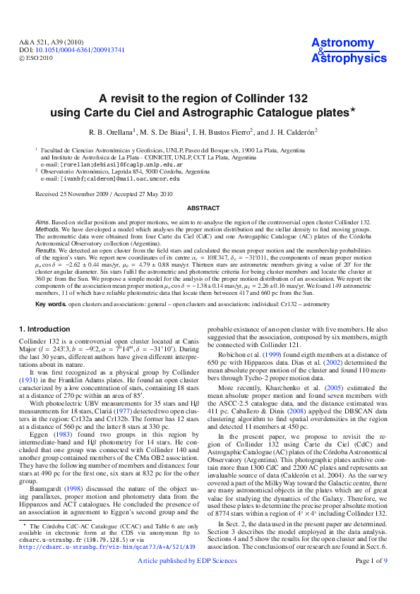 (PDF) A revisit to the region of Collinder 132 using Carte du Ciel and