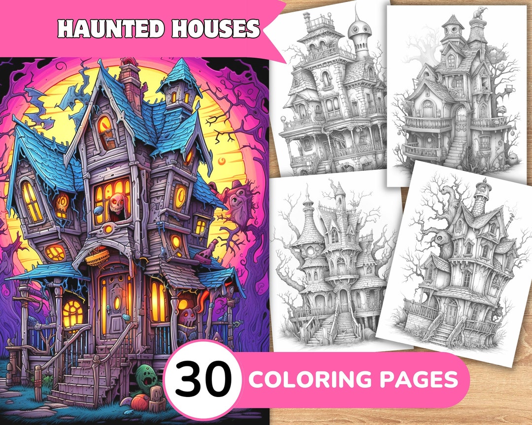 Haunted House Coloring Book, Haunted Coloring, Gothic Home Coloring