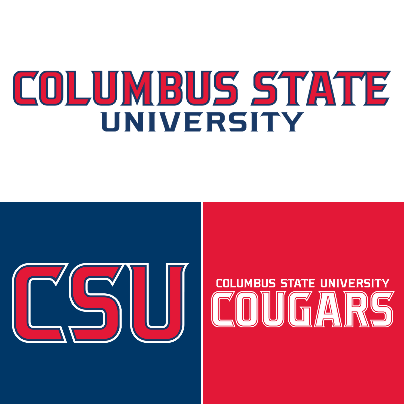 Columbus State University Athletic Text Icons on White, Blue, Red and