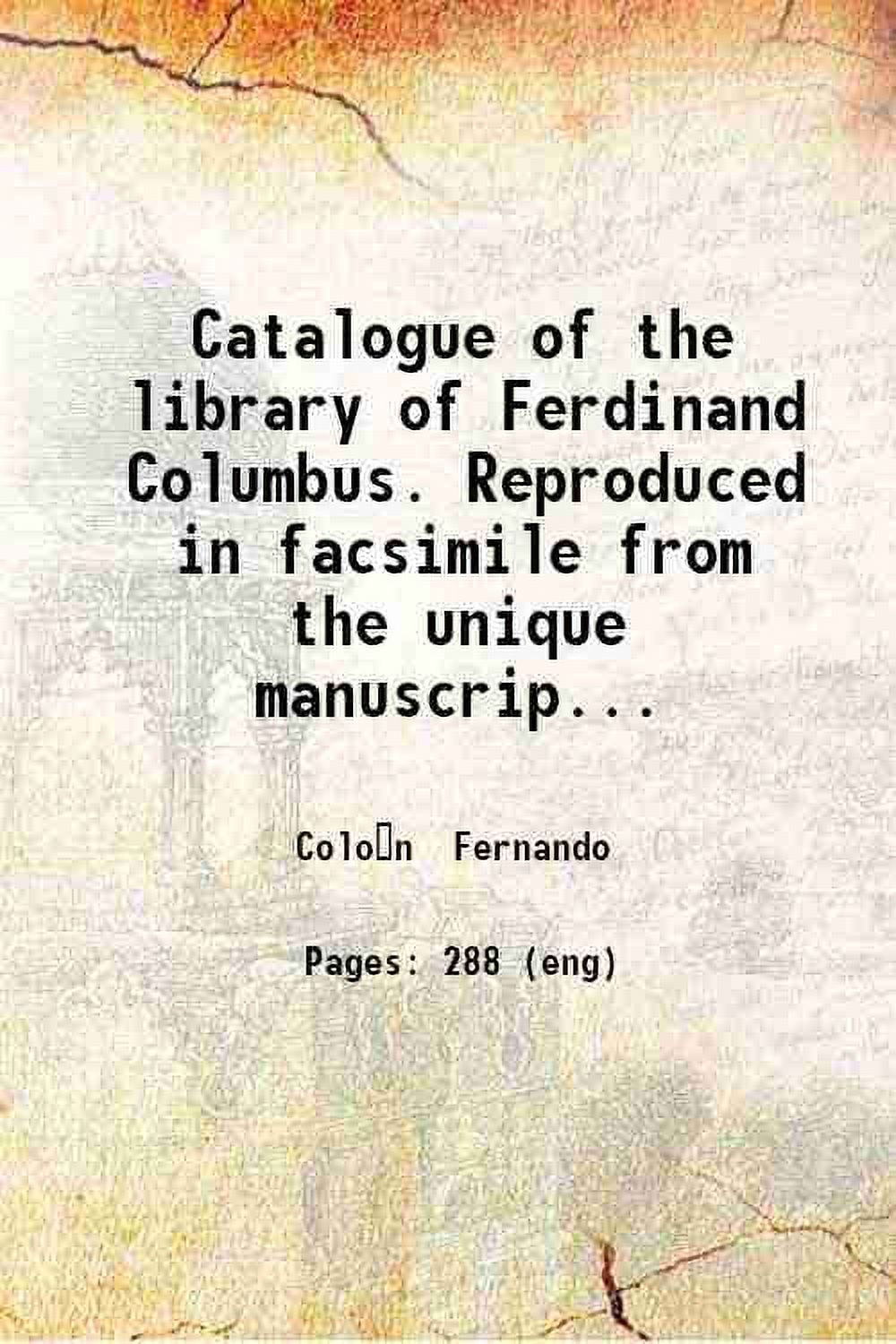 Catalogue of the library of Ferdinand Columbus. Reproduced in facsimile