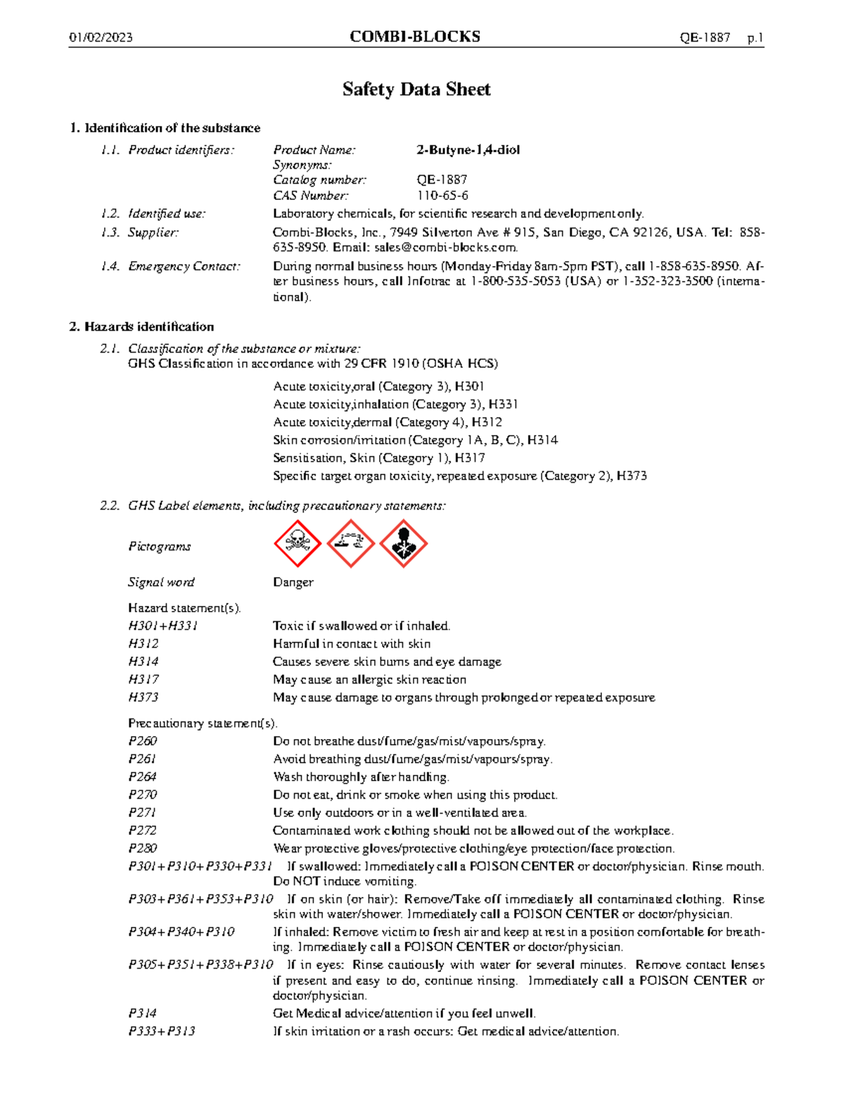 Combi Blocks precio 1,4 Butinodiol Safety Data Sheet Identification
