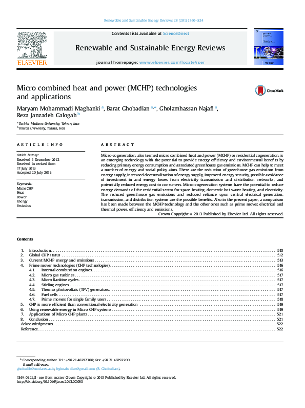 (PDF) Micro combined heat and power (MCHP) technologies and applications