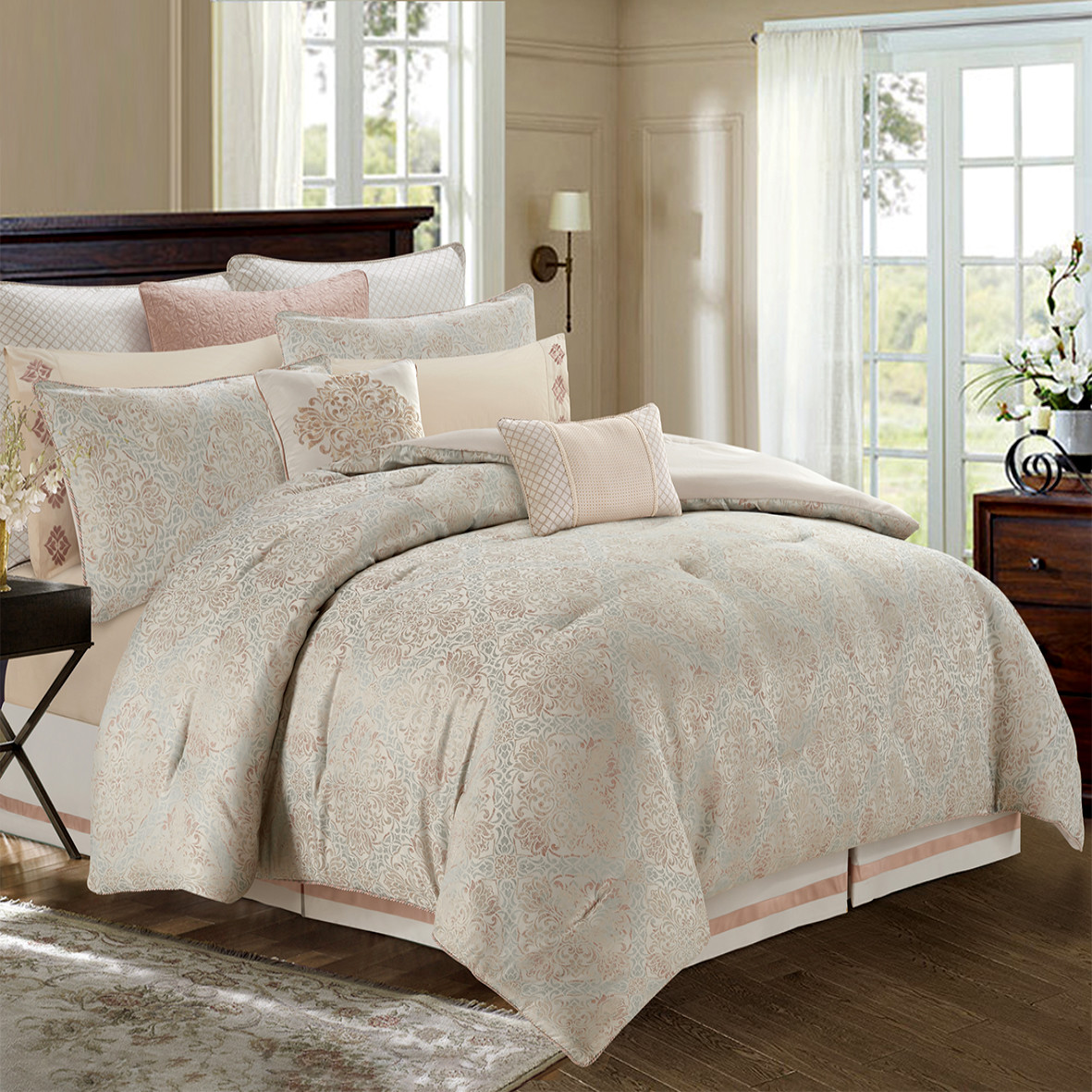 Seville Comforter Set 9 Pcs Damask Bedding Set Bed in a Bag Queen