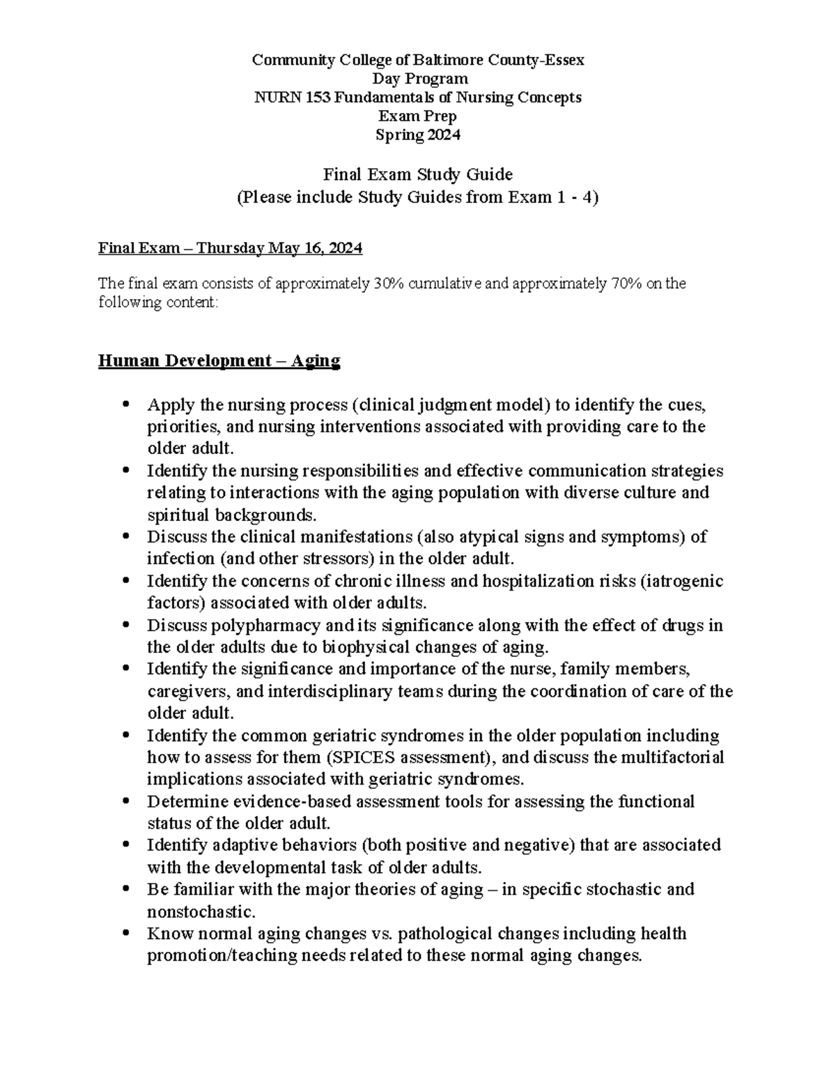 Final Exam Study Guide Spring 2024 Community College of Baltimore