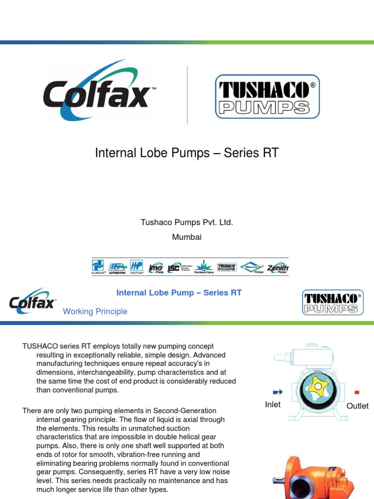 RT Series Lobe Pump Catalogue PDF PDF Lubricant Pump
