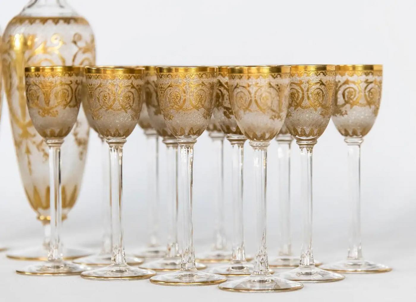 Set of Six Saint Louis Coloured Crystal Liqueur Glasses For Sale at 1stDibs