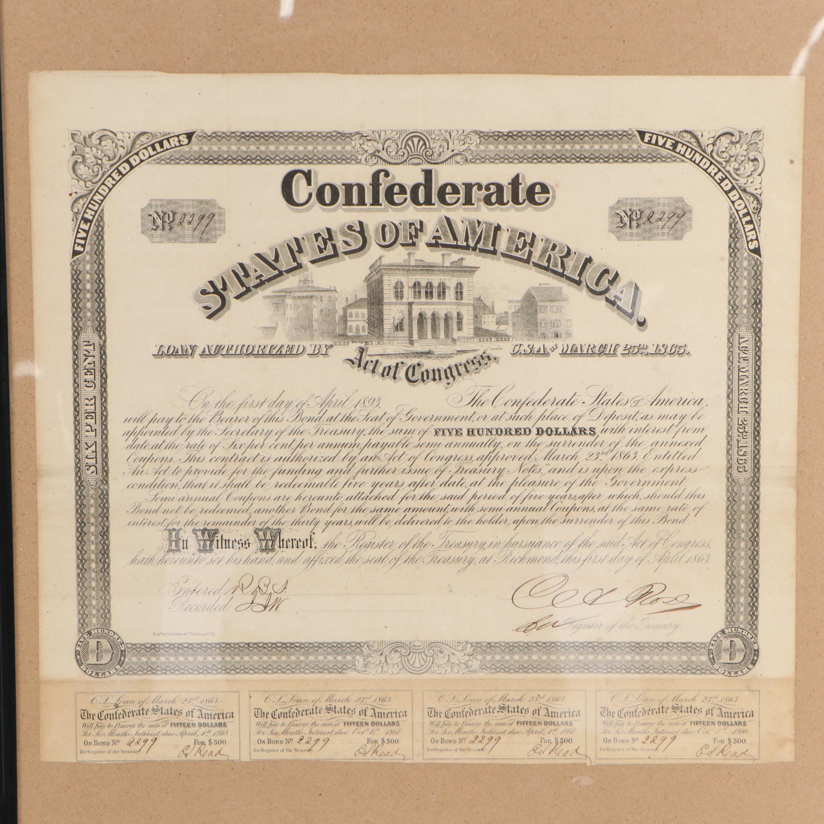 1893 Confederate States of America 500 Bond Certificate Matthew