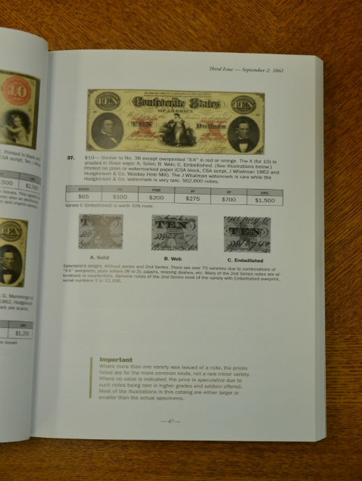 United States Paper Money Confederate Currency Guide to Value, Marks