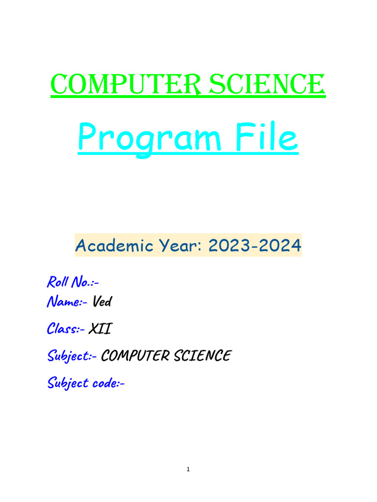Computer Science Program File Download Free PDF Computer File Numbers