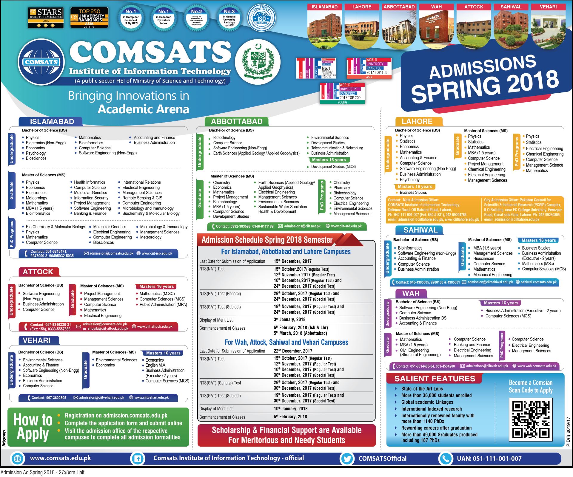![COMSATS Lahore Admission 2018 Last Date Fee Structure Guide]](https://www.vstudents.org/education/wp-content/uploads/2017/01/COMSATS-Lahore-Admission-Advertisement-2018.jpg)