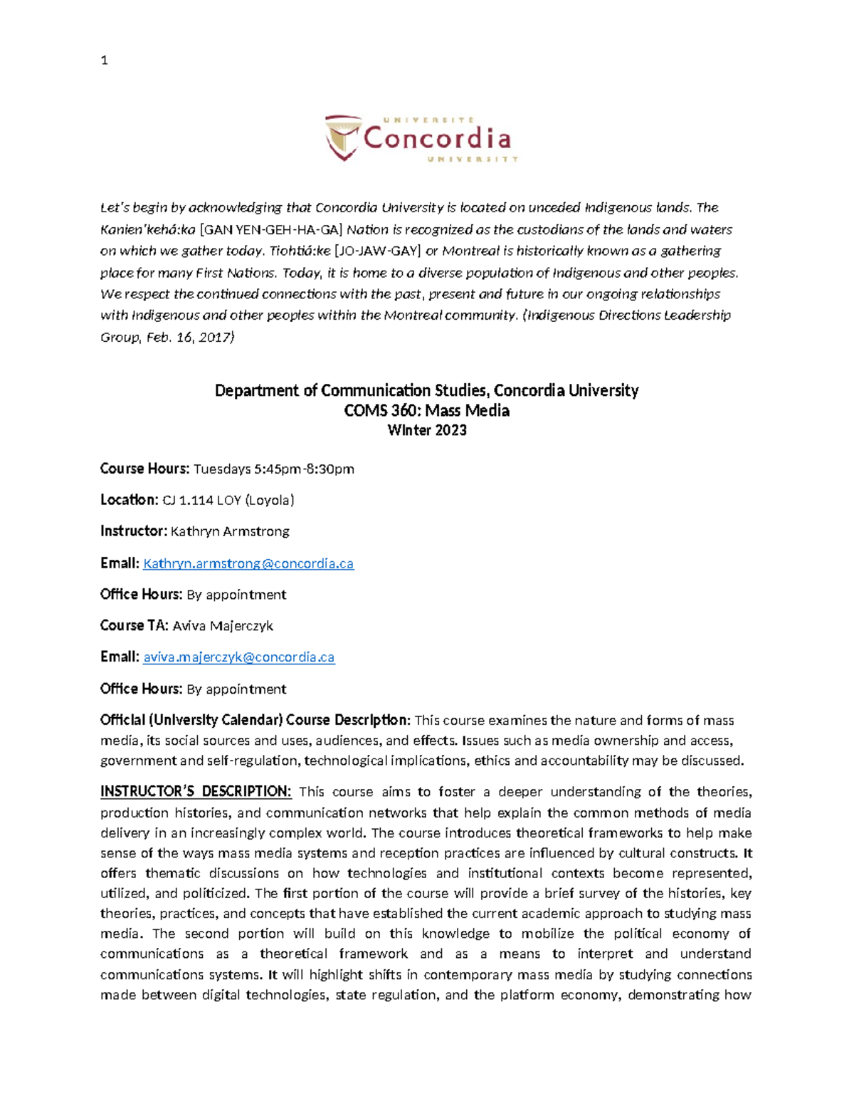 COMS 360 Mass Media Syllabus Winter 2024 Armstrong Let’s begin by