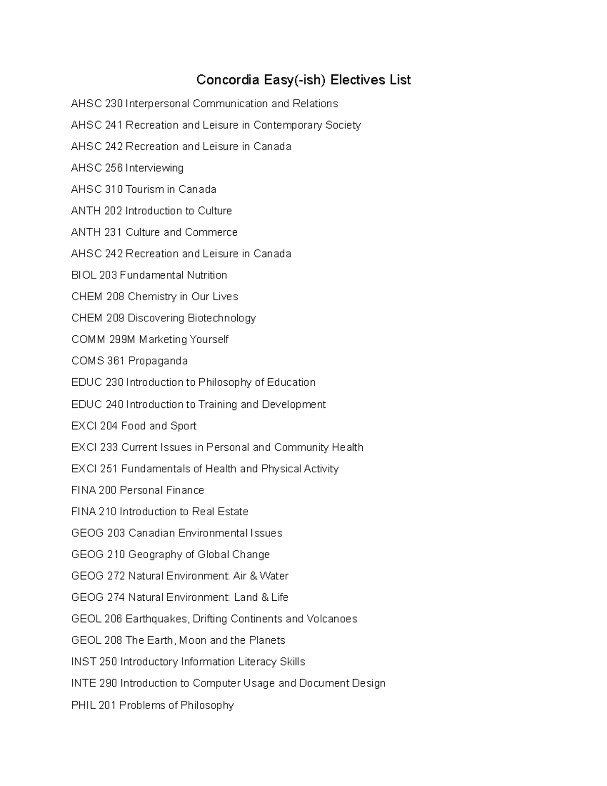 Concordia Electives Guide Easy(ish) Courses Overview Studocu